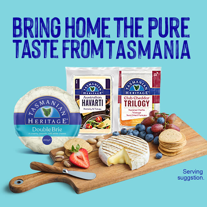 Your crowd deserves a crowd-pleaser with Tasmanian Heritage. Whether you’re hosting, gathering or enjoying a cozy evening, Tasmanian Heritage is perfect for any platter or cheese board. Select from a delicious range including camembert, brie, eye cheeses and cheddars.